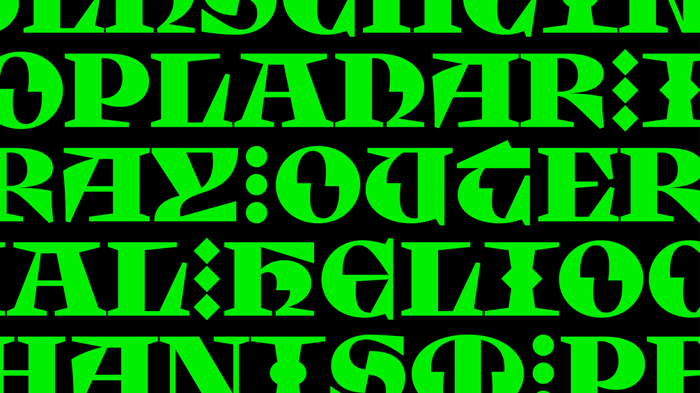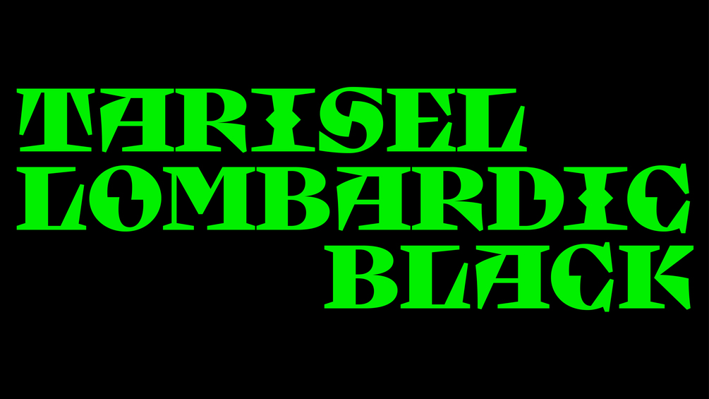 Tarisel Lombardic is a set of hybrid-gothic display capitals that blends Gothic lettering with a contemporary attitude. More than just a digitization of traditional versals, Tarisel Lombardic is a structural paradox whose synthetic shapes shift into a bestiary of stylistic alternates.